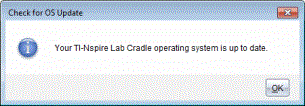 Quando utilizar o software TI-Nspire™, pode determinar rapidamente se o SO do Lab Cradle está atualizado quando o Lab Cradle estiver conetado a um computador.