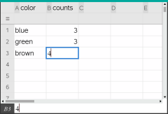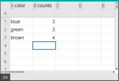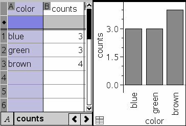 | 2. | Crie a lista de resumo. Para este exemplo, nomeie a lista “counts” e escreva a contagem total para cada uma das cores dos olhos. |