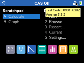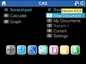 SO do TI-NspireTM CX CAS (sem opção para desligar o CAS)