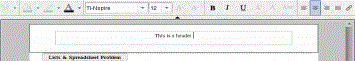 A moldura da caixa de texto na margem torna-se visível e o espaço do objeto é desativado. O cursor é colocado no espaço do cabeçalho ou rodapé e a barra de ferramentas de formatação fica ativa.