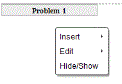 Abre-se um menu de contexto com opções para inserir problemas, páginas, aplicações e objetos PublishView™, editar opções para remover espaços ou eliminar uma página e opções para ocultar e mostrar quebras de problemas e molduras de objetos.