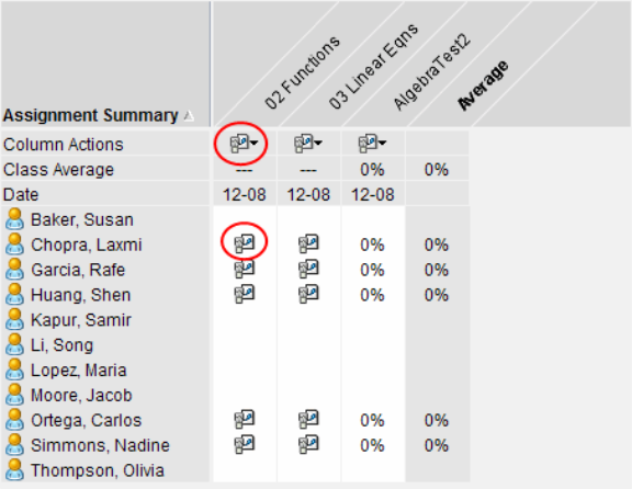 | 2. | Clique com o botão direito do rato na célula de uma coluna ou na célula da linha de um aluno e selecioneAbrir na área de trabalho Rever. |