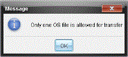 Nota: Apenas pode adicionar um tipo de ficheiro do sistema operativo à Lista de transferência. Se tentar adicionar mais do que um tipo de ficheiro do sistema operativo, é apresentada a mensagem de erro que se segue.