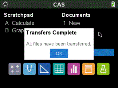 Quando o professor envia um ficheiro para a sua unidade portátil, a caixa de diálogo Transferências concluídas abre-se.