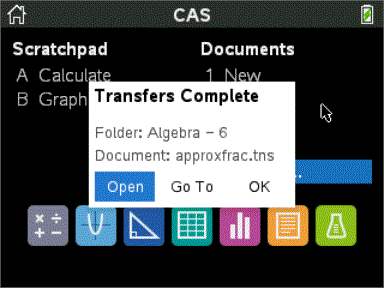 Clique em Ir para para aceder à localização na unidade portátil para onde o ficheiro foi enviado. O nome do ficheiro fica realçado. Pode abrir esse ficheiro ou navegar para outro ficheiro. Se o professor tiver enviado vários ficheiros, o último ficheiro por ordem alfabética da lista fica realçado.