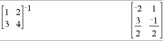 List1 ^⁻¹ ⇒ list Returns the reciprocal of the argument. For a list, returns the reciprocals of the elements in List1. |