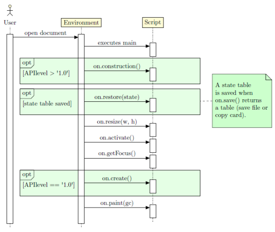However the open document scenario will be discussed here to visualize options and the order of the events received. In reality there might be many more events involved due to painting the script in different contexts (page sorter).