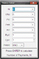 The Finance Solver displays its default values (or previous values, if you have already used the solver in the current problem).