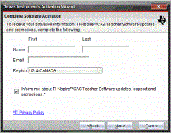 Haga clic en para abrir el Asistente de Activación de Texas Instruments. |