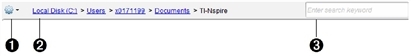 Aktuel sti: Indeholder en sti til den aktuelle placering, som man kan klikke på . Klik på et element for at navigere til et afsnit i stien. |