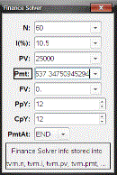 The Finance Solver displays its default values (or previous values, if you have already used the solver in the current problem).