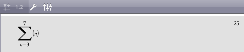 The algebraic sum template is inserted into the entry line. Small blocks represent elements that you can enter.