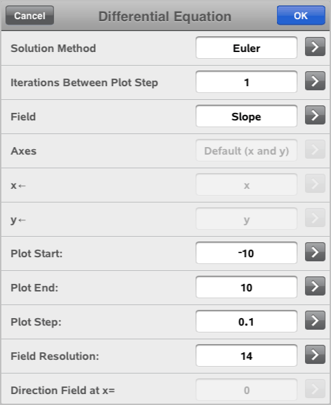 | 4. | Tap Edit Parameters to set the plot parameters. Select a numerical Solution Method, and then set any additional parameters. You can change these parameters anytime. |
