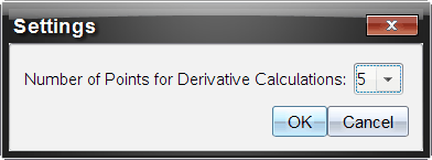 Utilisez cette option pour sélectionner le nombre de points à utiliser dans les calculs de dérivée. Cette valeur affecte l'outil tangente, la vitesse et l'accélération.