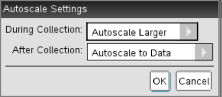 | • | Mettre automatiquement à une plus grande échelle : agrandit le graphique si nécessaire pour afficher tous les points tels que vous les avez acquis. |