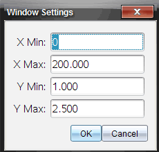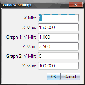 Lorsque vous travaillez avec deux graphiques, entrez deux minima et deux maxima pour l'axe des y, mais seulement un seul ensemble de valeurs minimum et maximum pour l'axe des x.