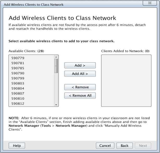Das Dialogfeld „Drahtlose Geräte zum Klassen-Netzwerk hinzufügen“ wird geöffnet.