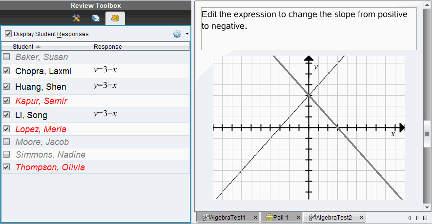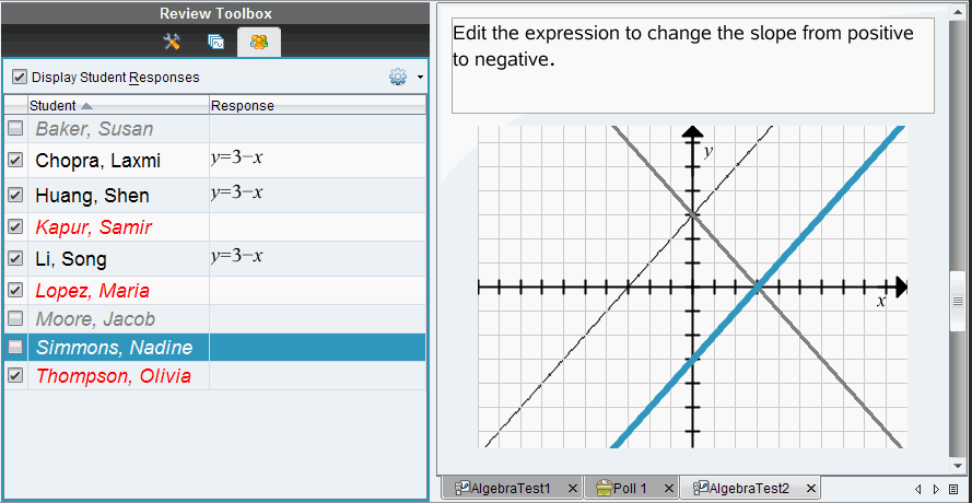 | 1. | In the Student pane, select the students whose responses you want to show. |