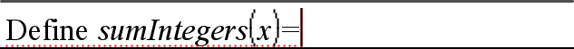 | 1. | On the Calculator entry line, type Define sumIntegers(x)=. Do not press Enter yet. |