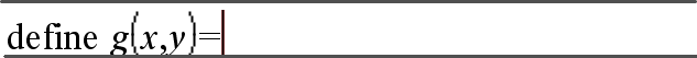 | 1. | On the Calculator entry line, type Define g(x,y)=. Do not press Enter yet. |