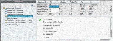 Vous pouvez prévisualiser la réponse d'un élève à une question individuelle dans le Panneau de prévisualisation. Ceci fournit un moyen rapide, simple et efficace pour l'évaluation des questions, réponses et la modification des notes.