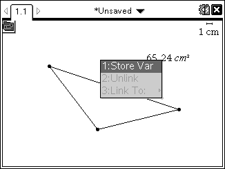 Il est possible de stocker une partie ou un attribut d'un objet ou d'une fonction créé(e) dans l'application sous forme de variable. Les attributs pouvant être utilisés comme variables sont, par exemple, la surface d'un rectangle, le rayon d'un cercle, la valeur d'une cellule de feuille de calcul, le contenu d'une ligne ou d'une colonne ou l'expression d'une fonction. Lorsque vous créez une variable, celle-ci est stockée dans la mémoire.