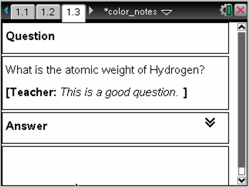 | • | Palmare: Nell'area di lavoro di Notes, premere b per visualizzare il menu di Notes. Premere Inserisci > Commento, quindi selezionare Insegnante o Revisore. |