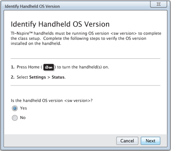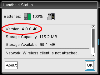 Du er her: Oppsett av TI-Nspire™ CX Navigator™ lærerprogramvare > Bekrefter håndholdt OS versjon