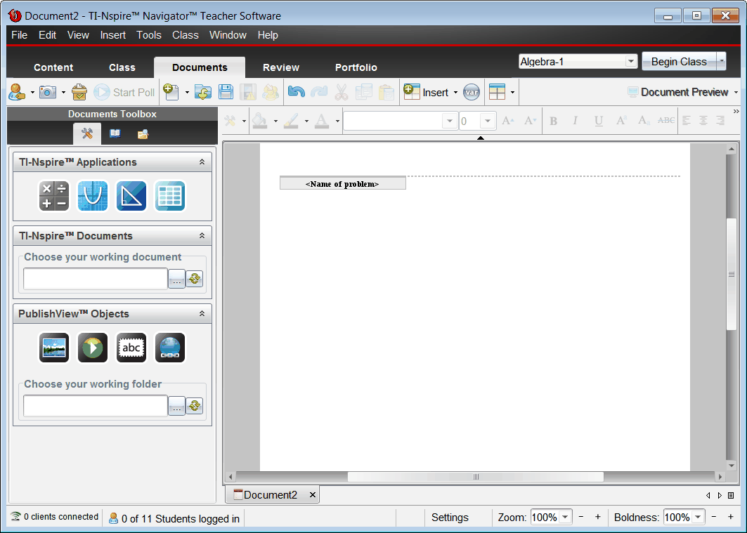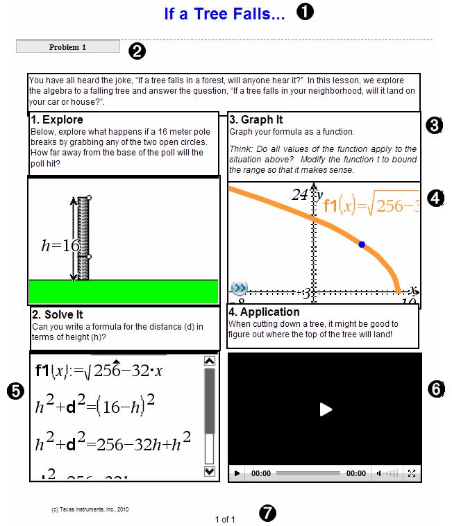 Följande exempel visar hur du kan använda TI‑Nspire™-applikationer och PublishView™-objekt för att skapa ett PublishView™-dokument. I detta exempel visas kanterna för att visa gränserna runt objekten. När kanterna visas kan du enkelt arbeta med objekt medan du skapar ett dokument. När du är redo att skriva ut eller publicera dokumentet på webben kan du välja att dölja kanterna.
