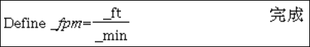 示例:使用预先定义的单位 _ft 和 _min,定义名为 _fpm 的单位,可让您输入以英尺/分钟为单位的速度值,并将速度结果转换为英尺/分钟。