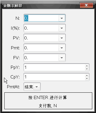 几个 TI‑Nspire™ 函数提供财务计算功能,例如货币时间价值、分期偿还计算以及投资回报计算。