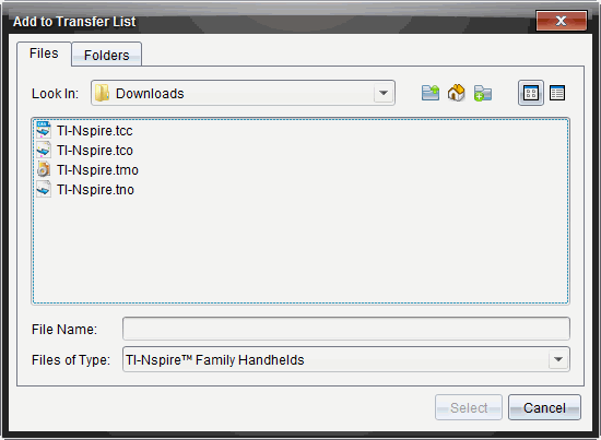 要升级 TI‑Nspire™ 手持设备,请选择 TI‑Nspire.tno。 |