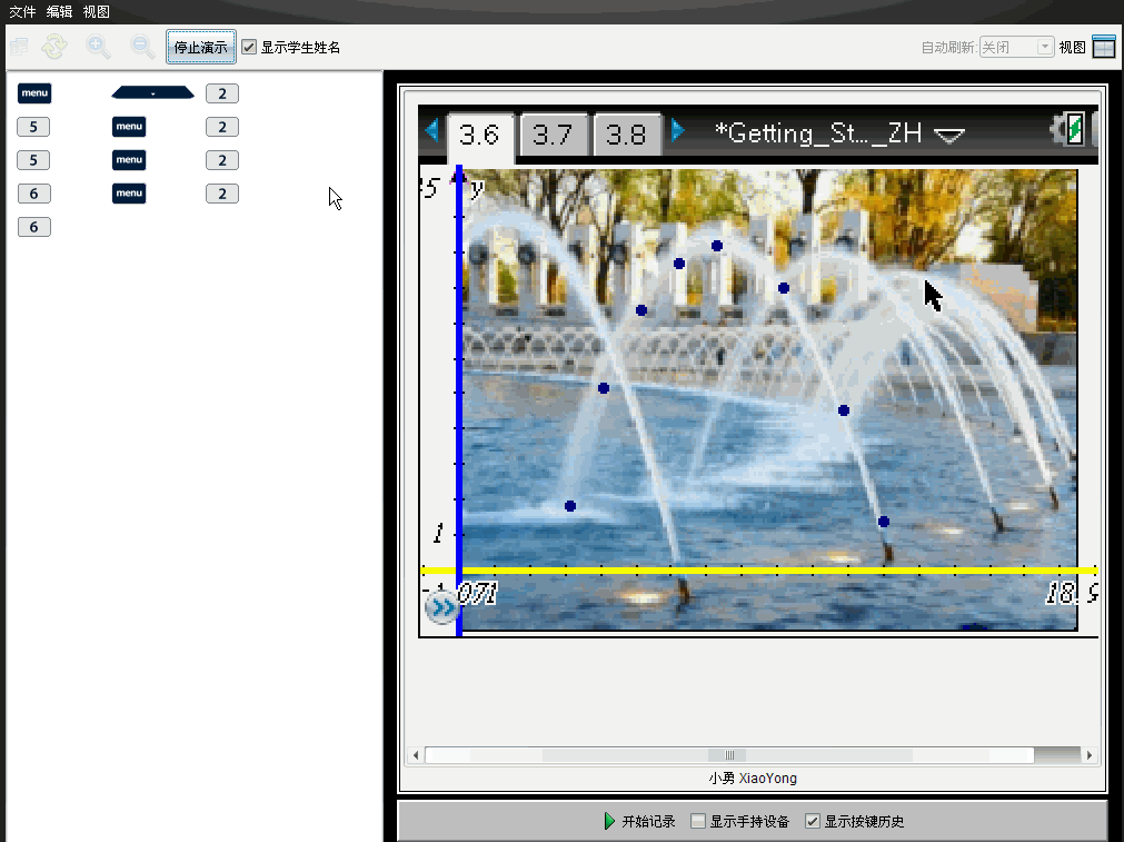 默认情况下,您启动实时演示器时将显示图形计算器。显示图形计算器使班级能够查看演示期间按下的按键。图形计算器显示时: