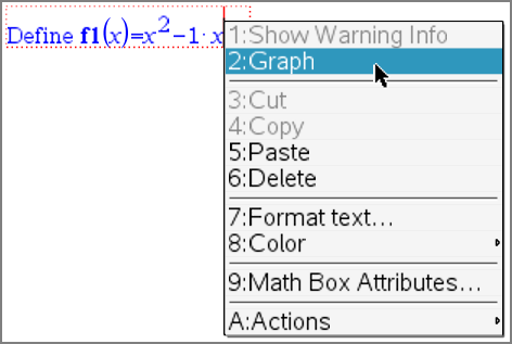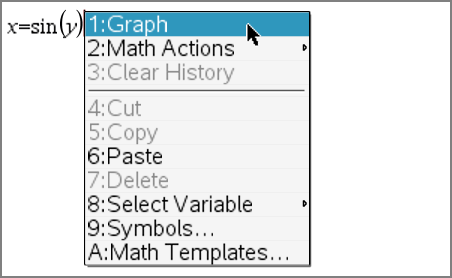 可以直接从上下文菜单将函数或关系绘图。 此功能可在 Notes(记事本)、Scratchpad(便签簿)和 Calculator(计算器)页面上执行,适用于许多函数和关系。