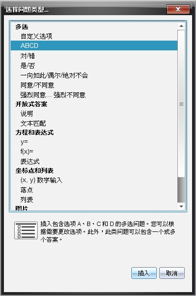在选择问题类型时,“选择问题类型”对话框底部将会显示出该问题的简短说明。