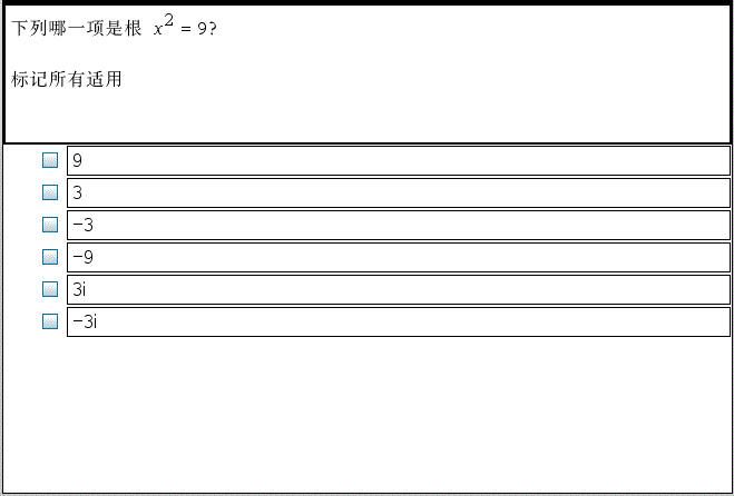 答案类型用圆表示单选问题,用方块表示多选问题以让学生明白他们可以选择多项。 |