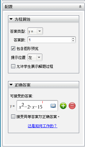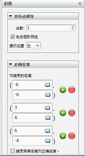 打开“配置”工具,设置坐标点个数、添加图形预览、输入正确答案,并将等效答案设置为正确。 |