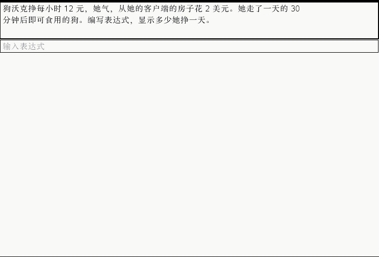 您可以在“问题”区域键入任意文本、数学表达式和化学方程式的组合。 |