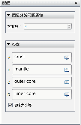打开“配置”工具,设置答案类型、答案个数和正确答案。 |