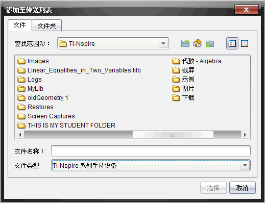 注: 您只能将包含文件的文件夹添加到传送列表。