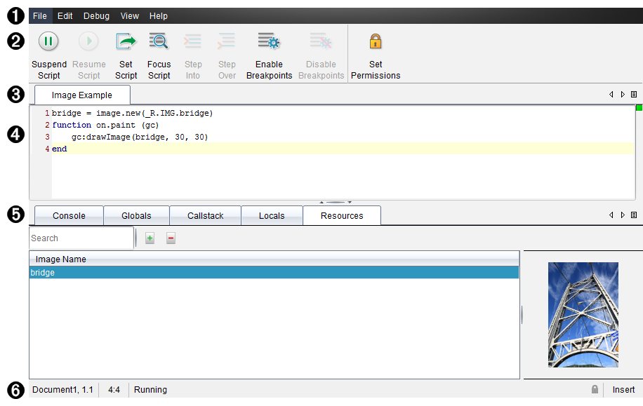 狀態列。 顯示指令碼的運行狀態。 請參見使用狀態列部分。 |