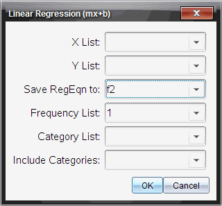 | 9. | If you want to store the regression equation in a specific variable, press Tab, and then replace Save RegEqn To with the name of the variable. |