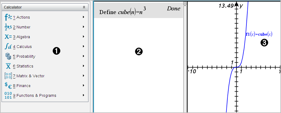 | • | Define variables, functions, and programs that become available to any TI‑Nspire™ application—such as the Graphs application—residing in the same problem. |