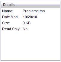 Pour les fichiers de classeur et de série de cours, la fenêtre Détails affiche le nom, la date de modification du fichier, sa taille et s’il est en lecture seule.