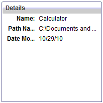 Si un dossier est sélectionné, la fenêtre Détails affiche le nom du dossier, le chemin d’accès au dossier et la date de modification de celui-ci.