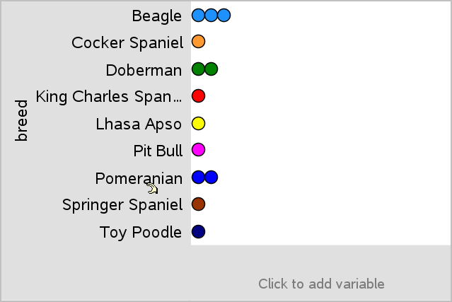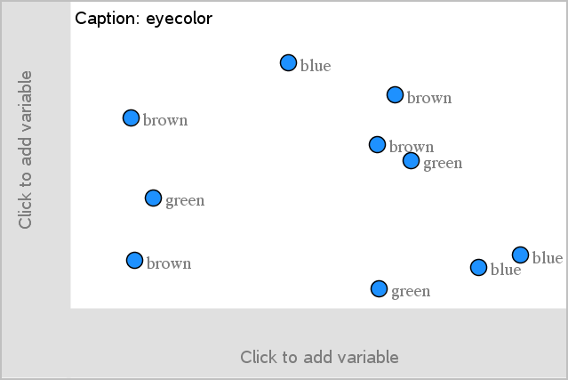 | 1. | Cliquez sur la zone Ajouter une variable de l’un des axes et choisissez le nom d’une variable de catégorie. Pour plus d’informations, reportez-vous à la section Création d’un diagramme à points. |