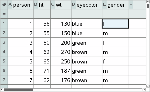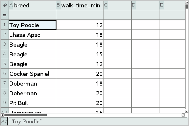 | 1. | Ouvrez une activité qui comprend une page Tableur & listes ou créez des données à représenter sous la forme d’un tracé dans l’application Tableur & listes. |