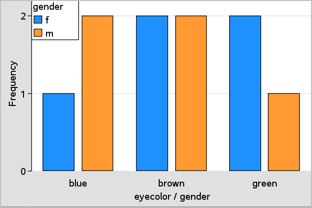 | 5. | Pour diviser la couleur des yeux par sexe, cliquez sur le menu Propriétés du tracé, puis sur Diviser les catégories selon la variable et sur sexe. |