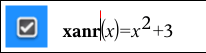 | 1. | Löschen Sie in der Eingabezeile den vorhandenen Namen. Löschen Sie beispielsweise „f1“ aus „f1(x)”. Mithilfe der rechten und linken Pfeiltaste können Sie den Cursor an die gewünschte Position setzen. |