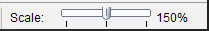 | ▶ | Drag the slider to the appropriate scale percentage. The scale slider is located on the far right side of the status bar, at the bottom of the TI‑Nspire™ window. Scale percentages range from 100% to 200%. The default scale is 150%. |